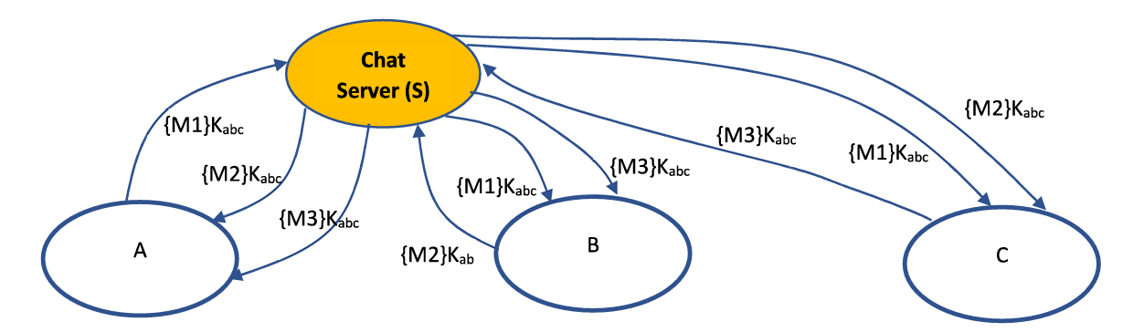 A Python reference implementation of a key establishment protocol that derives a mutually agreed session key between three entities A, B, and C. The session key then secures a group chat with Confidentiality, Integrity, Availability, and Non-Repudiation.